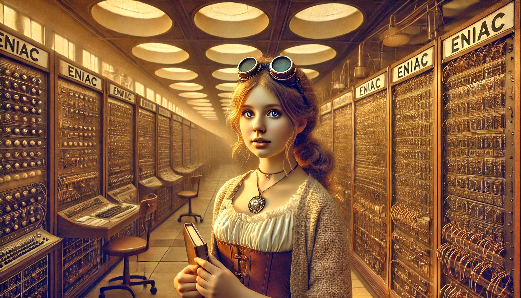 Créé par John William Mauchly et J. Presper Eckert en 1945, l’ENIAC devient le premier ordinateur ne comportant plus aucune pièce mécanique. Il est composé de 18 000 tubes à vide, s’étend sur plus 160 m2 et opère en décimal. Les premières à avoir programmé l’ENIAC sont les six programmeuses Betty Snyder Holberton, Jean Jennings Barik, Kay McNulty Mauchly Antonelli, Marlyn Wescoff Meltzer, Ruth Lichterman Teitelbaum and Frances Bilas Spence. Il est surtout utilisé pour effectuer des calculs balistiques.