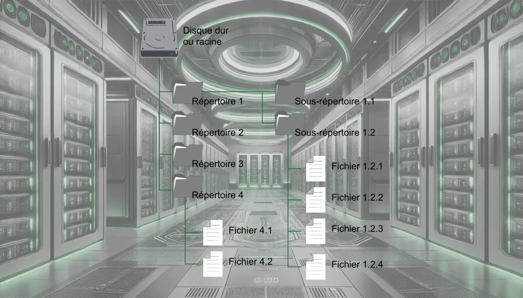 En informatique, les informations structurées par les systèmes d’exploitation (Windows, MacOS, Linux, Android, etc.) sont comme les branches d’un arbre. On parle d’arborescence. La racine se représente par un disque dur, puis il y a des répertoires (branches) et des sous-répertoires dans lesquels on retrouve des fichiers. C’est pour cela qu’on emploie également la notion de parentalité : un répertoire “parent” peut contenir un ou plusieurs sous-répertoires “enfants”.