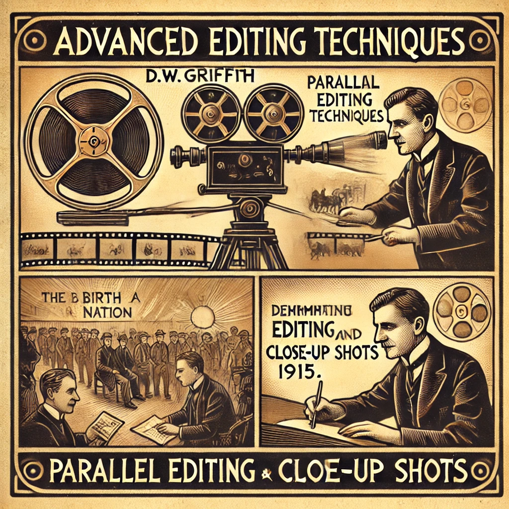 D.W. Griffith est souvent crédité pour avoir développé des techniques de montage avancées, telles que le montage parallèle et le gros plan, particulièrement visibles dans son film « Naissance d’une Nation » (1915). Ces techniques ont transformé la manière de raconter des histoires au cinéma.