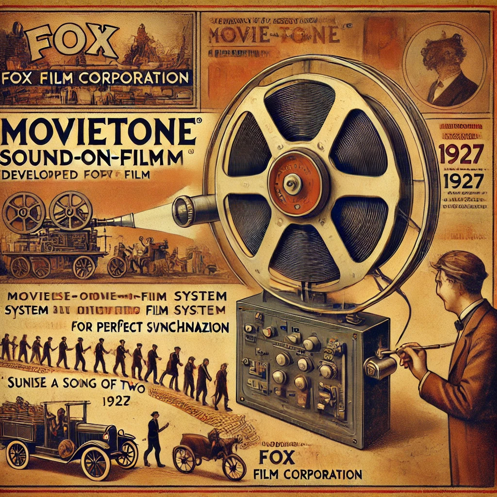 Movietone était un système de son sur film développé par Fox Film Corporation. Contrairement au Vitaphone, le son était enregistré directement sur la pellicule du film, permettant une synchronisation parfaite. Ainsi, ce système a été utilisé pour des films comme « Sunrise: A Song of Two Humans » (1927).