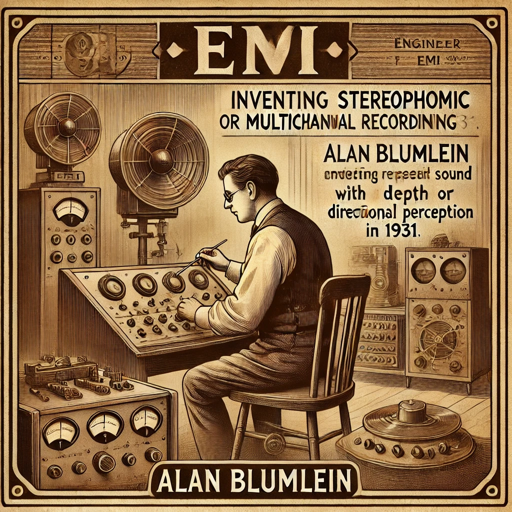 Alan Blumlein, ingénieur chez EMI, a inventé l’enregistrement stéréophonique ou multicanal en 1931. Cette technologie permettait de capturer et de reproduire le son avec une perception de profondeur et de direction, offrant une expérience sonore plus immersive et réaliste pour le public.