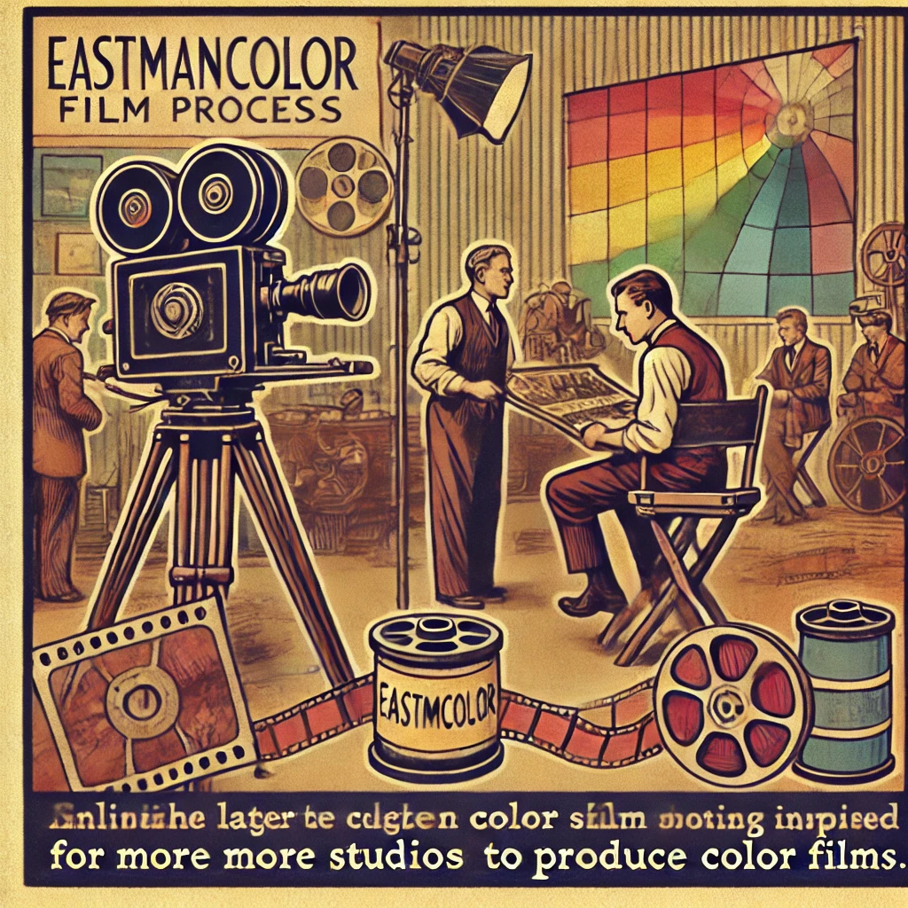 Bien que légèrement postérieur aux années 1930, l’Eastmancolor a été une innovation importante en matière de film couleur. Introduit par Eastman Kodak, ce film mono-bande a simplifié le processus de tournage en couleur et a permis à un plus grand nombre de studios de produire des films en couleur, grâce à son coût réduit et à sa facilité d’utilisation.