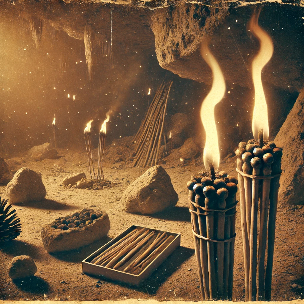 Un peu plus tard vers 31 500 ans avant J.C. les Hommes utilisent le feu sur des bâtons de bois inflammables que l’on appelle : torches. C’est très souvent du pin qui est choisi comme bois car il ne brûle pas trop vite et permet une bonne combustion. Au paléolithique, les peintres de la grotte Chauvet utilisent des torches de pin pour s’éclairer et produire le noir de charbon servant de pigment pour leurs fresques.