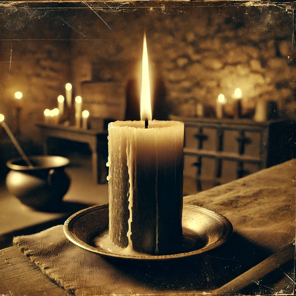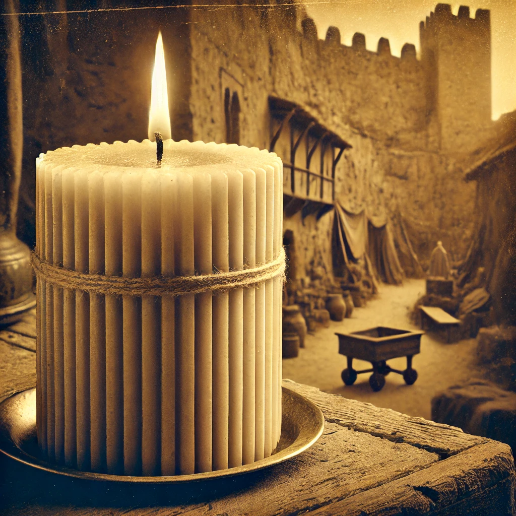 La chandelle est un dispositif d’éclairage à flamme formé d’une mèche entourée de matière combustible solide. Au Moyen Âge, la mèche se compose de chanvre ou d’étoupe et plus tard en coton. Le combustible est généralement du suif de mouton ou de bœuf. La chandelle brûle avec une odeur forte et en émet une fumée noire.