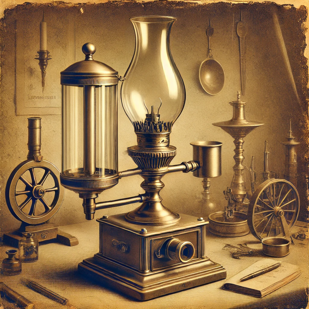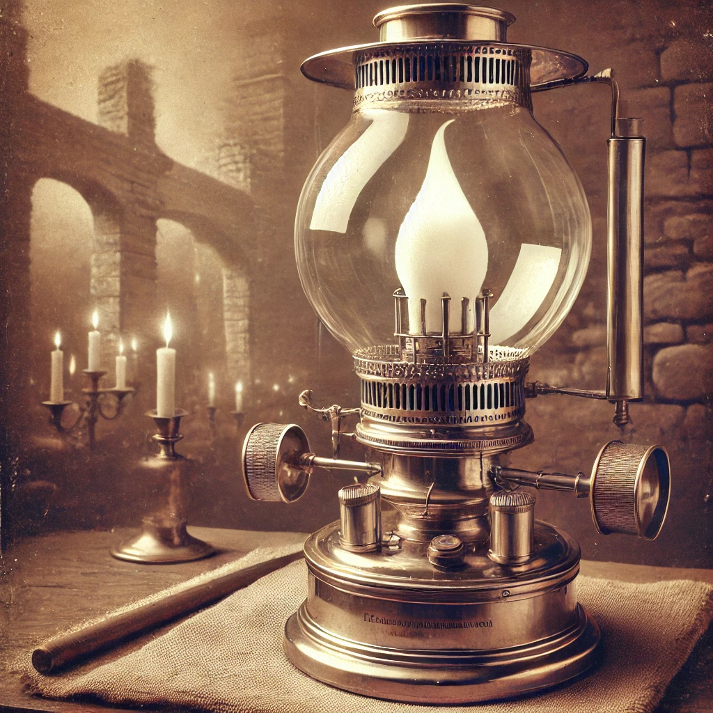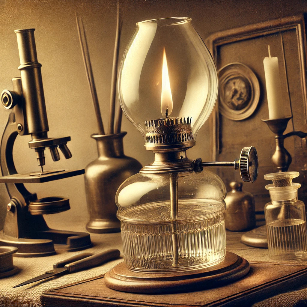 Le pharmacien polonais Ignacy Lukasiewicz invente la lampe à pétrole en 1853. C’est un luminaire muni d’un réservoir contenant du pétrole distillé et d’une cheminée de verre. La mèche trempée brûle le pétrole par capillarité, c’est à dire en l’absorbant.
