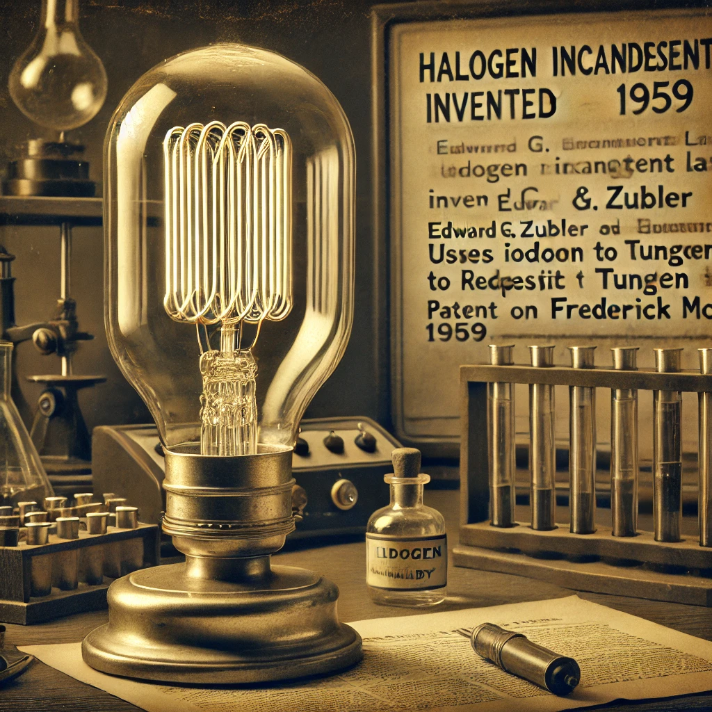 En 1959 Edward G. Zubler et Frederick Mosby, ingénieurs de General Electric inventent la lampe à incandescence halogène. Ils se basent principalement sur un brevet de 1933 décrivant la redéposition du tungstène sur le filament et l’usage de l’iode qui est un gaz halogène.