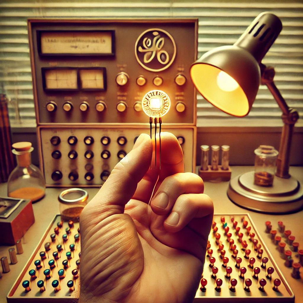 En 1962, Nick Holonyak Jr. et Sam Bevacqua de General Electric créent la première diode électroluminescente. La DEL (ou LED en anglais) repose sur la découverte de Henry Joseph Round en 1907 de la première émission de lumière par un semi-conducteur. Plus tard en 1927, Oleg Losev dépose le premier brevet de la DEL. À cette époque, les DEL ne s’utilisent qu’en infrarouge pour les télécommandes et principalement dans les couleurs rouge, vert et jaune.